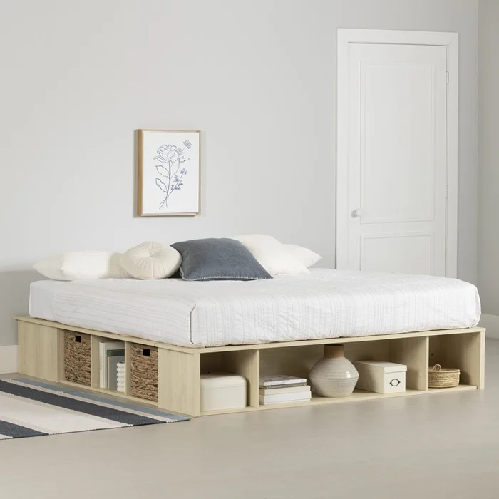 heres an unusual, ingenious piece: a bed with multiple storage spaces! You get plenty of open spaces on each side of the bed. The space under the bed is large you can use it for books, warm sheets, and accessories. Baskets included