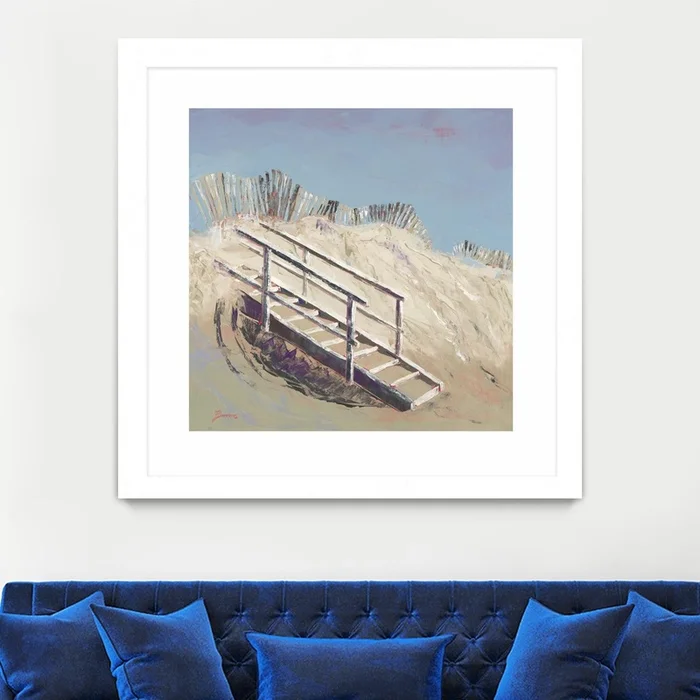 Beach Access Matted and Framed White 36×36 Wall Art|uvre dart murale encadre blanche et mate Beach Access 36×36