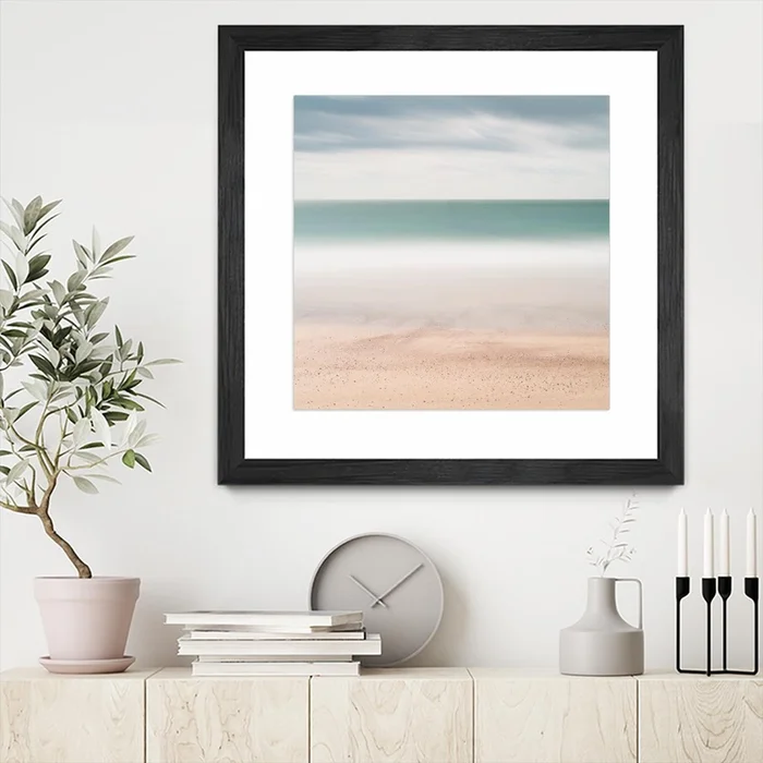 Beach, Sea, Sky Matted and Framed Black 30×30 Wall Art|uvre dart murale encadre noire et mate Beach, Sea, Sky 30×30