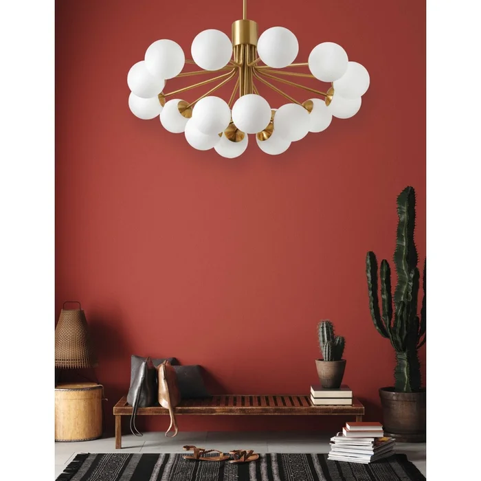 Dainolite Amanda 18 Light Chandelier Aged Brass White Opal Glass Lamp|Lustre Amanda de Dainolite en verre blanc opale, avec fini laiton vieilli et 18ampoules