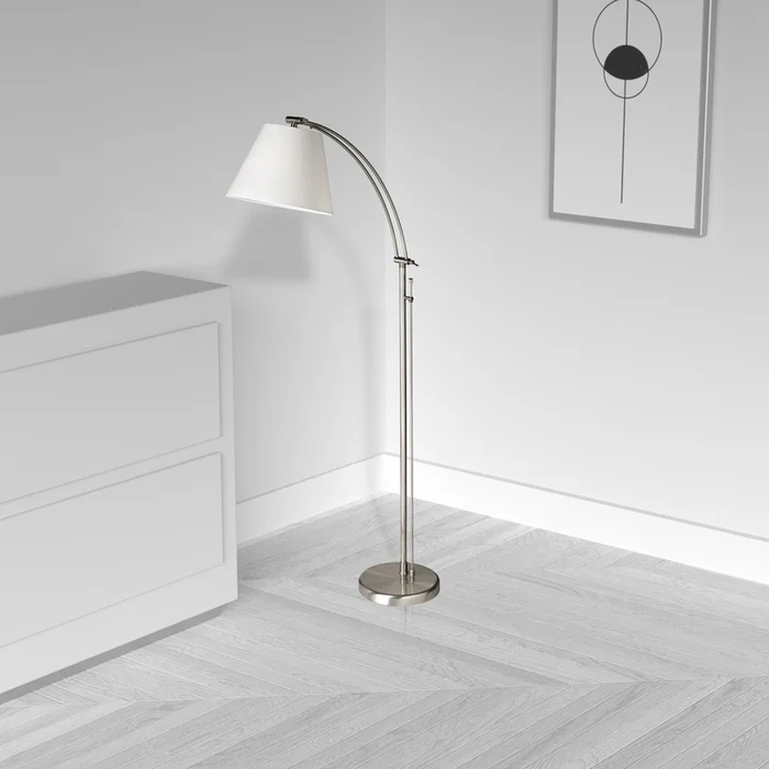 The Felix family of lighting takes a traditional floor lamp design and adds modern convenience and a stylish aesthetic. The angle of the shade can be adjusted to suit your needs. The metal frame and base in your choice of finish incorporates a straight rod that divides in two, with adjustable arms that arc out to the fabric shade. An empire shade completes the fashionable silhouette. With its practical features and clean modern style, Felix lighting is a welcome addition to your living room, bedroom or office space.