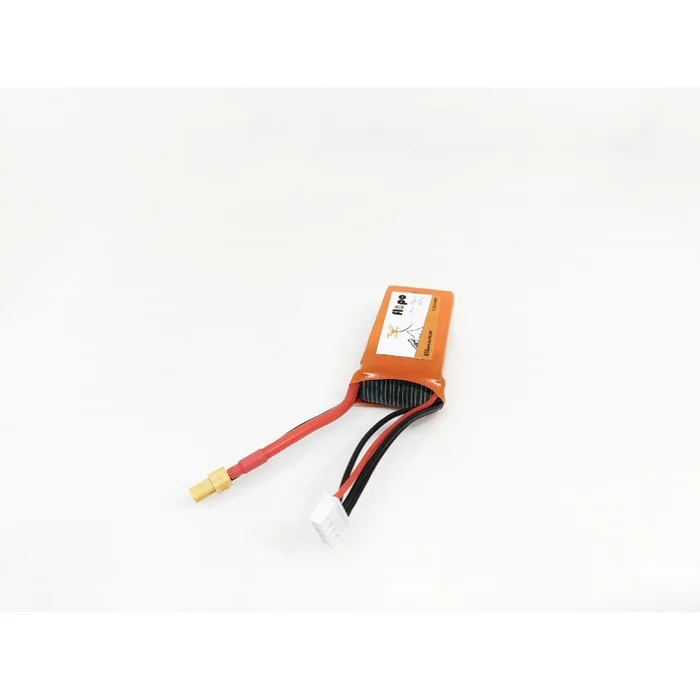Flipo 850mah 2S 30C/60C Lithium Polymer Battery Pack is equipped with heavy duty discharge leads to minimize resistance and sustain high current loads.
