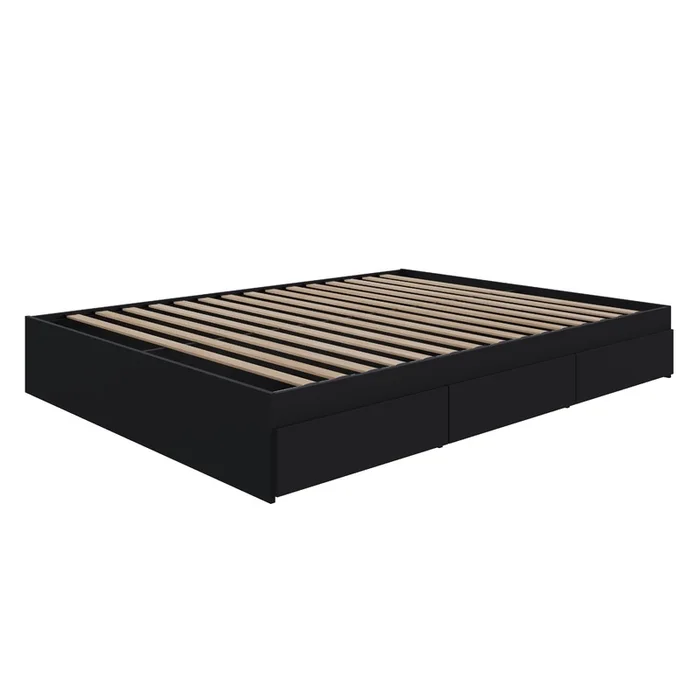 Nexera twin size 3-drawer bed in Black can be paired with different Nexera twin size headboards to create a complete bed set with lots of storage. This Twin Size 3-Drawer Storage bed offers 3 convenient drawers, ideal to store away beddings, clothes, toys, books without taking any extra square footage. It’s also entirely reversible, so you can decide on which side of the bed you prefer having the 3 drawers. This bed frame features a unique metal and hardwood slat construction allowing for easy assembly, sturdy construction and easier handling.