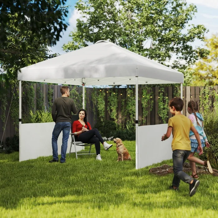 Discover the ease of outdoor gatherings with the outsunny pop up outdoor gazebo. This garden tent springs to life in moments with its swift pop-up design, neatly packing away into a wheeled bag for effortless travel. The upf50+ oxford fabric gazebo tent shields you from 98% of uv rays, offering a comfortable, shaded spot for 6-9 people, whether it’s a family reunion or market day. Ground stakes, guy ropes and sandbags are included for stability.