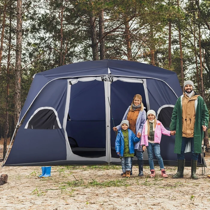 Outsunny has never stopped exploring in reliable camping tents. This spacious family tent is for day trips, overnighters, and any beginner level backpacking trips. The interior curtains is built for added privacy by creating separate living and sleeping space. Waterproof test with a rating above 2000mm. Taffeta fabric with PU coating is suitable for increased UV protection and cool comfort. Note: This tent is not designed to withstand extreme weather conditions.