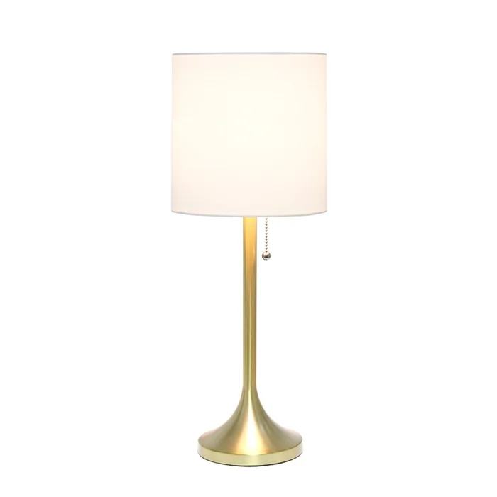 This fun and fashionable lamp features a gold metal base and white fabric drum shade making it the perfect addition to your lighting needs. This lamp will add simplicity and style to any space in your home. Perfect for bedrooms, kids and teens, college dorms, nurseries, or fun offices!