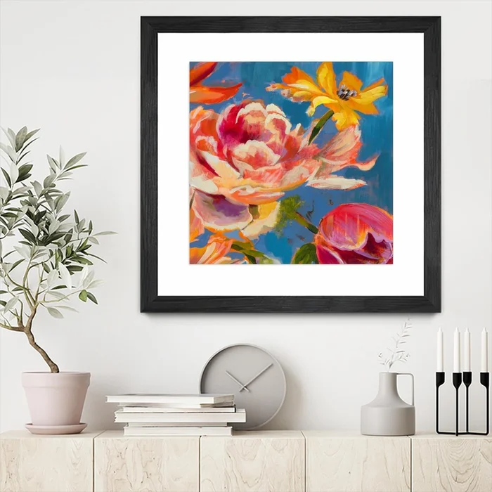 Spring Bouquet V31 Matted and Framed Black 36×36 Wall Art|uvre dart murale encadre noire et mate Spring Bouquet V31 36×36