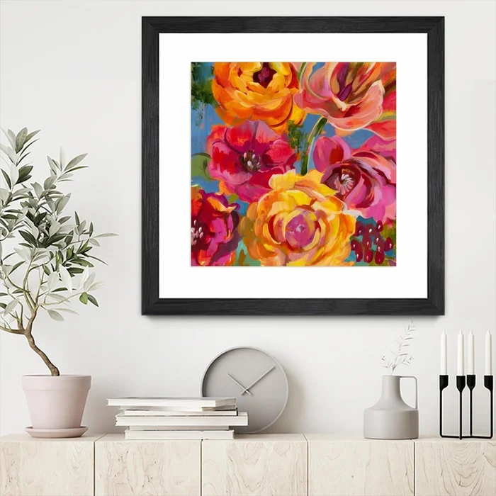 Spring Bouquet V32 Matted and Framed Black 30×30 Wall Art|uvre dart murale encadre noire et mate Spring Bouquet V32 30×30