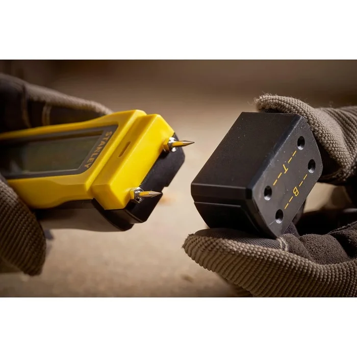 The STANLEY 0-77-030 Moisture Meter is a highly specialized tool designed for accurately measuring moisture levels in masonry materials such as mortar, concrete, and plaster. This moisture meter is perfect for professionals in construction, masonry, and building inspection, ensuring precise moisture readings to prevent structural damage, mold, or deterioration. The device features an illuminated LED display, making it easy to read moisture levels in low-light environments. With its ergonomic design, the meter offers comfort and ease of use during extended operations. The STANLEY 0-77-030 is built to withstand tough worksite conditions, providing reliable results for assessing the moisture content in building materials to ensure quality and durability.