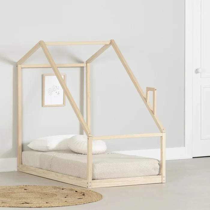 Create a fun, trendy decor in your child’s bedroom with this playhouse-shaped platform for the bed. Your child will be so adorable, all bundled up in this little house. Everyone will love the minimalist design with its straight lines and oh-so-cute chimney. The natural wood tones and charm of this piece will help create the coziest little nook! This bed base is just what you need if your child is getting too big for the crib but isnt quite old enough for a single bed as yet. Its the perfect solution for making sure the bedroom furniture evolves as your little one grows. This standard-size frame means you won’t even need a new mattress or a box spring! Place the mattress from the cot directly on the wooden slats of this platform. Because its at floor level, your toddler will find it easy to access safely.