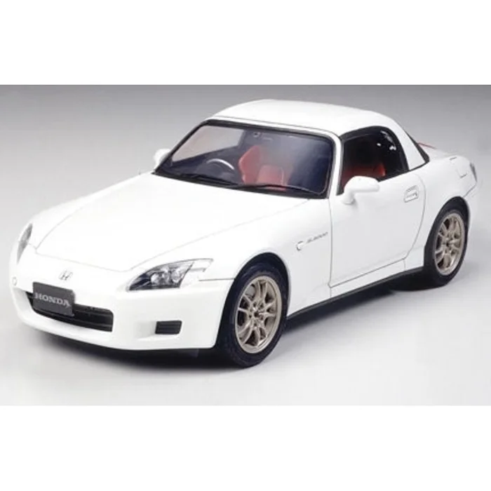 Honda’s first passenger production car, the S500 open two seater sportscar, was first announced in the 1962 Tokyo Motor Show, going on sale the following year. After the production termination of its successor, the S800, Honda moved away from producing front-engine/rear-wheel drive sports cars. September of 1998 saw the sensational rebirth of this type, with the announcement of the S2000. This open two seater features the traditional sports car look with a puposeful long nose/short deck styling. Futuristic headlights wrap around the side, appearing to be pulled back, poised for speed. The naturally aspirated 2.0 liter inline-4 DOHC-VTEC powerplant pumps out over 250hp, yet still manages to reduce toxic exhaust emissions to 1/10th the level of its predecessors. The positioning of the engine is also ideal, sitting just behind the front wheel axle in interest of 50/50 weight distribution. The sturdy body and superior road handling, meshed with a four-wheel double wishbone suspension and a newly developed 6-speed manual transmission, offer high tractability and synthesis between car and driver. The inside of the cabin features bucket seats, state of the art digital indicators, and a red button for starting the engine. Of course, the impact safe design, air bag, and all the other safety features of modern sports cars have also been thoroughly considered. Developed in celebration of Honda’s 50th anniversary, the S2000 will surely take it place as the 2000cc sports car to beat in the 21st century.