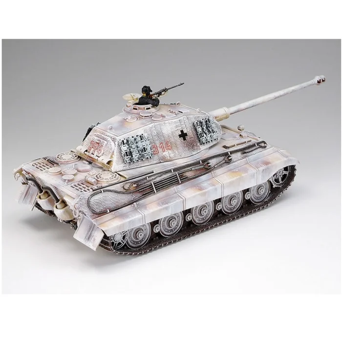 During design of the King Tiger, two 88mm gun-toting turret types were developed: the Porsche-produced variant was recognizable by its curved lines; this model accurately captures the form of a Porsche turreted King Tiger, hitting the nail on the head with differences from the competing Henschel (“Production”) turret King Tigers, such as the tapered gun barrel and large grille covers.