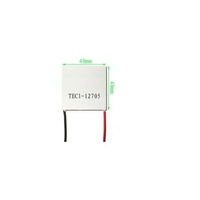 TheTEC1-12705 40x40mm Thermoelectric Cooler 5A Peltier Module is the simple application of Peltier Thermoelectric Effect. The module features 127 semiconductor couples in the area of 40mmx40mm which very effectively cools and heats up to 80C.