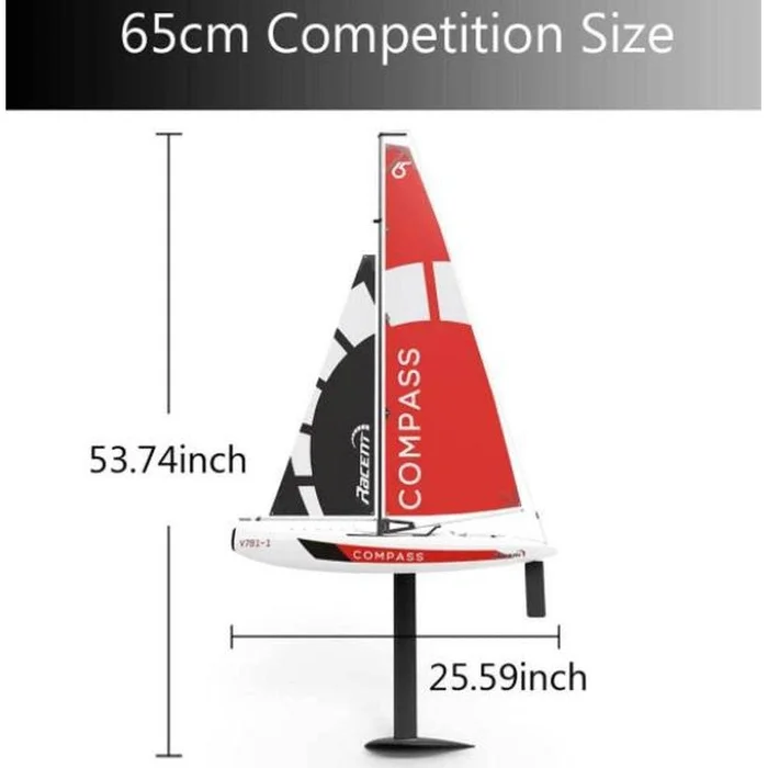 The Racent COMPASS650mm sailboat providesentry-level sail boating enthusiasts with the perfect model when entering the hobby. The COMPASScomes 95% prebuilt, requiring little preparation time to hit the water. Dont let the small size fool you, with features like a mini-sail winch servo and a 2.4GHz radio system allowing enthusiasts to easily and affordably get into the hobby.