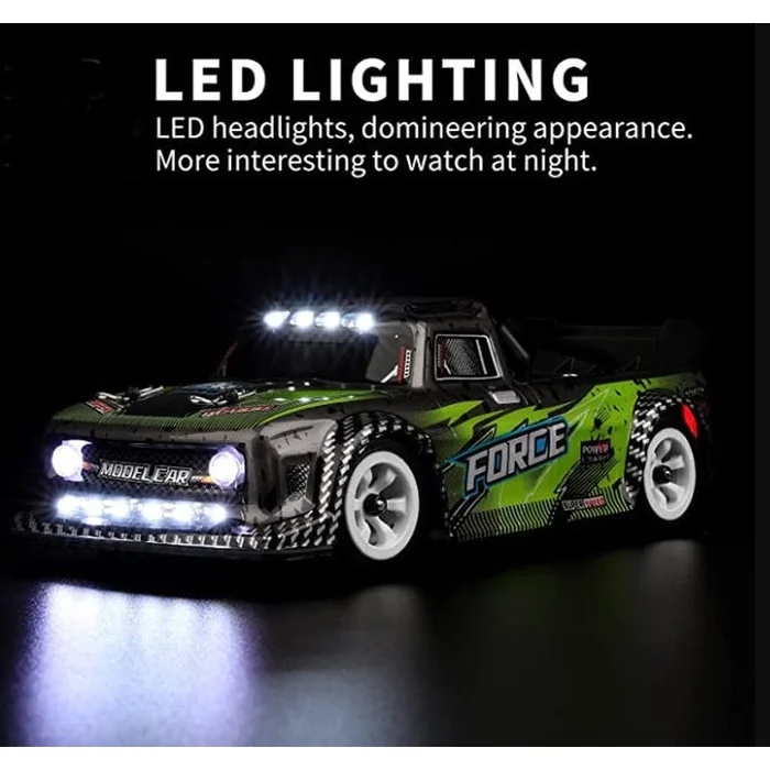 - Full simulation structure design, full real car control feeling (remote control, realizing high-speed driving, instant acceleration, deceleration, braking, backing, turning, lights. Independent suspension of front and rear wheels for smooth cornering and stable body posture.