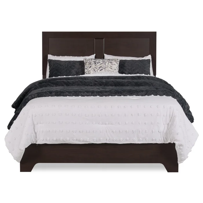 Embrace the feeling of contemporary style with the Yorkdale queen panel bed. A deep brown finish made from engineered wood creates a neutral base to perfectly pair with almost any room decor. A sleek, tall headboard features a simple two-panel design that lets the natural look of the wood shine through. Let the sleek, modern design of the Yorkdale bed help you build the perfect space for rest and relaxation.